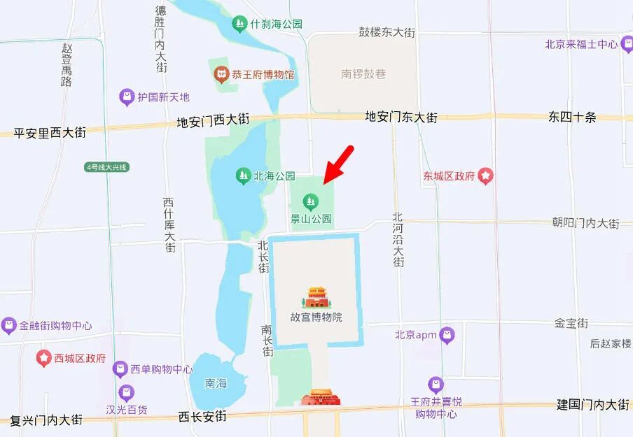 北京故宫的北面有一个景山公园短期股票配资,故宫是坐北朝南,因此景山公园也可认为是故宫的“后面”。